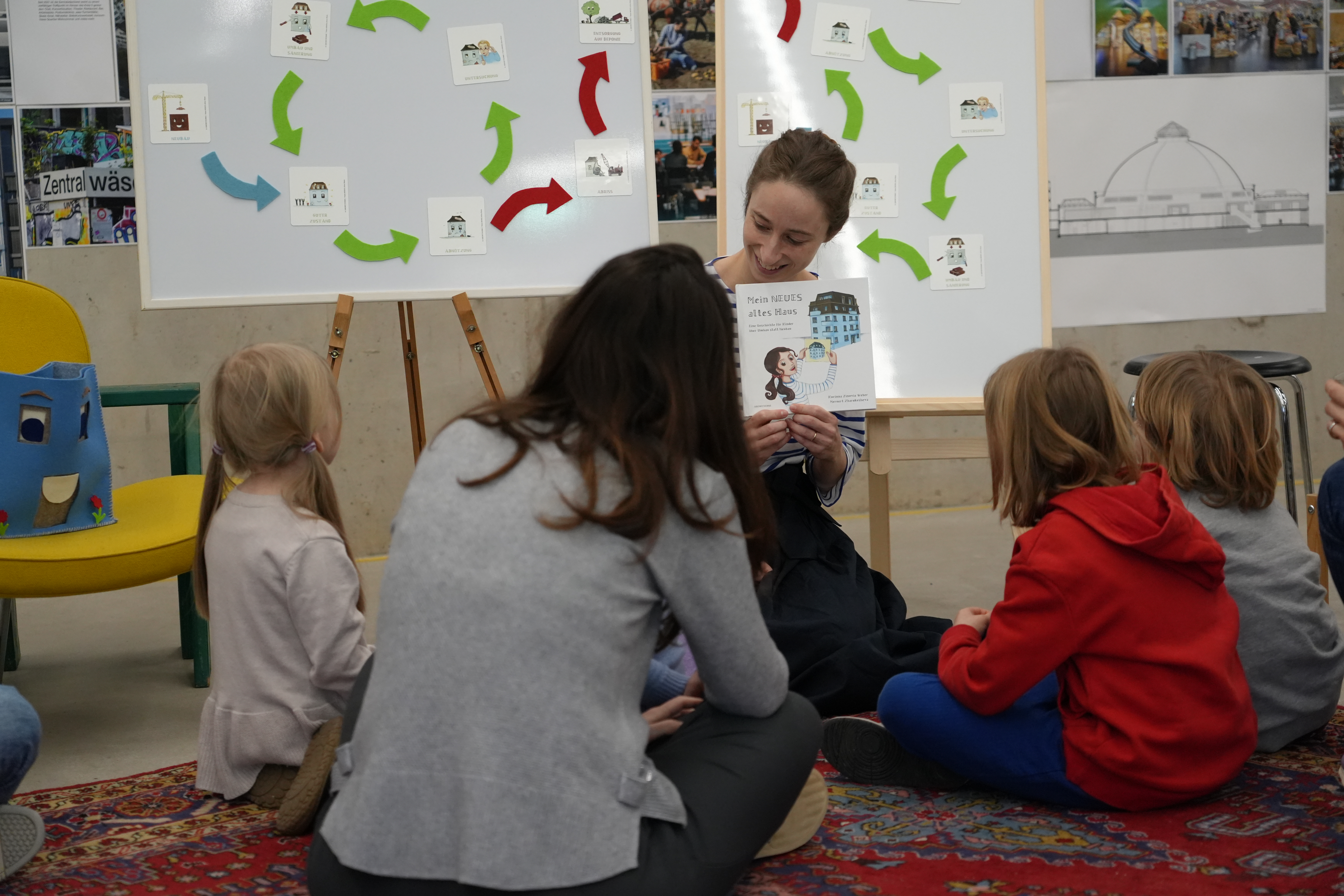 Hier wird das Thema Nachhaltigkeit und Umbau in Architektur liebevoll den ganz Kleinen nähergebracht. Die Autorin Dr. Korinna Zinovia WEBER kommt mit einem besonderen Gast für Kinder: das blaue Haus! Sie liest aus ihrem Buch vor (ab 4 Jahren, jünger willkommen) und anschliessend entdecken wir alle zusammen spielerisch den Häuserkreislauf.